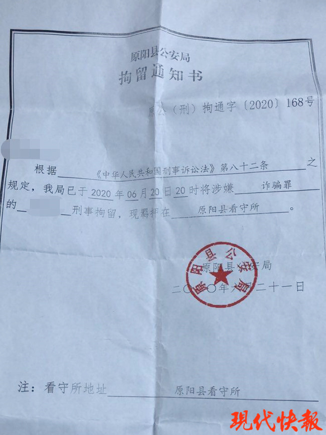 現(xiàn)代快報(bào)記者從這9名學(xué)生家長(zhǎng)那里獲悉,他們都收到了來自河南省原陽縣公安局的刑事拘留通知書,涉嫌的罪名是詐騙罪。這些學(xué)生目前被羈押在河南原陽縣、封丘縣等不同的看守所。