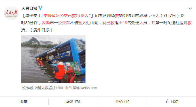 貴州安順一公交車墜湖,車內(nèi)有參加高考的學(xué)生,現(xiàn)已救出18名受傷人員