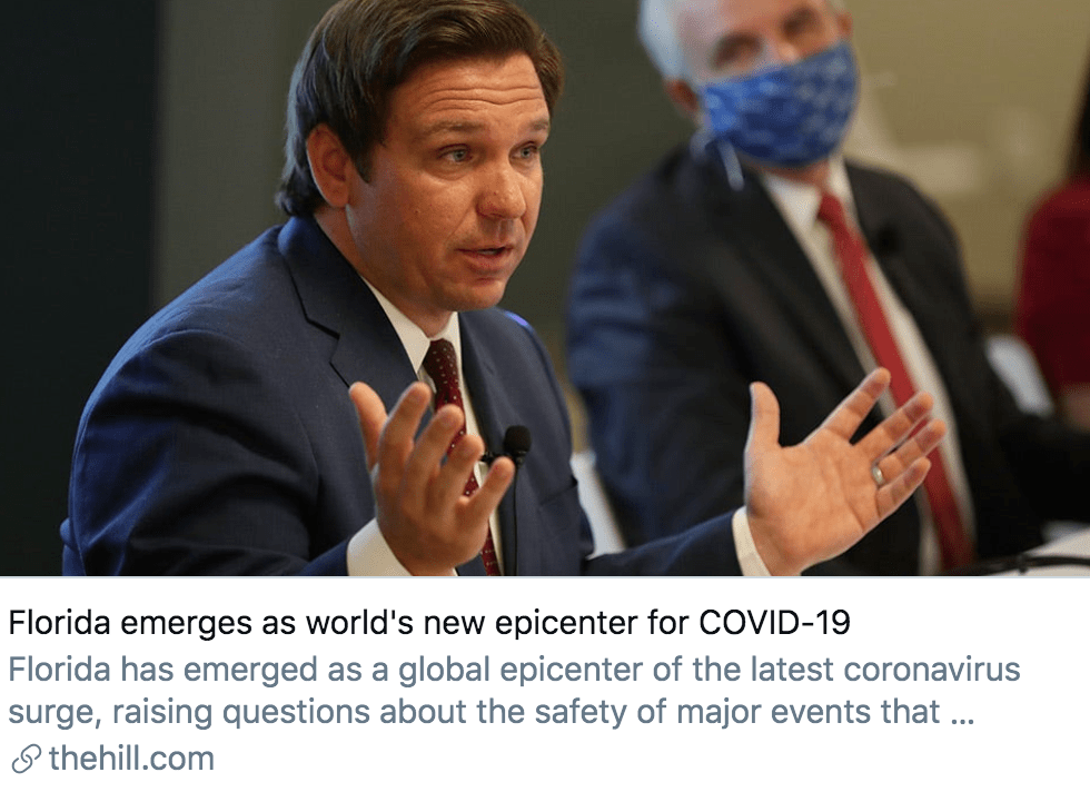 佛羅里達(dá)州成為全球疫情又一個“震中”。/ 《國會山報》報道截圖