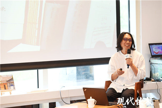 “你看這只鳥的尾巴像樹枝一樣,它愛躲在樹叢里面,讓其它鳥落在它尾巴上休息,它會搖搖尾巴把鳥嚇走,咧著嘴享受捉弄鳥的快樂。”南京師范大學(xué)書文化研究中心主任、江蘇省紫金文化創(chuàng)意英才朱贏椿,講述的是自己的文化項(xiàng)目——便形鳥。而他的演講,充滿想象力,讓人仿佛看到了《山海經(jīng)》中的奇幻世界。