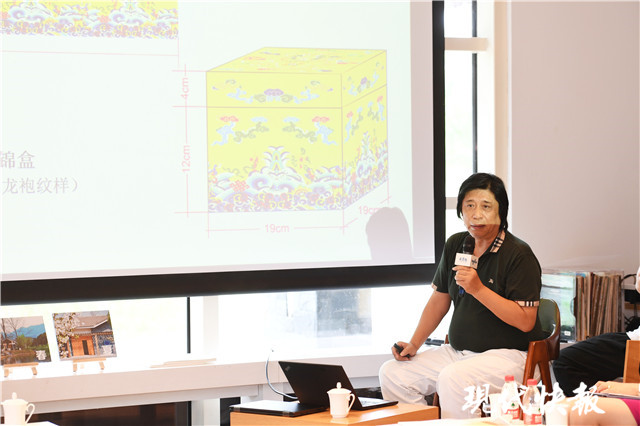 和故宮博物院合作,制作二十五璽云錦盒;和茅臺酒廠合作,推出五福茅臺酒……這幾年,金文在云錦創(chuàng)新創(chuàng)意上,一直摸索著。他說,歷史上,云錦曾是皇家御用,而當(dāng)下,云錦如何求生存,如何產(chǎn)業(yè)化,這需要轉(zhuǎn)換思路。“這些年,我們做了一些創(chuàng)新。比如:嘗試織造肖像圖,織造的《桃花扇》被江蘇大劇院收藏;制作云錦衍生品,走進(jìn)現(xiàn)代人的生活。”