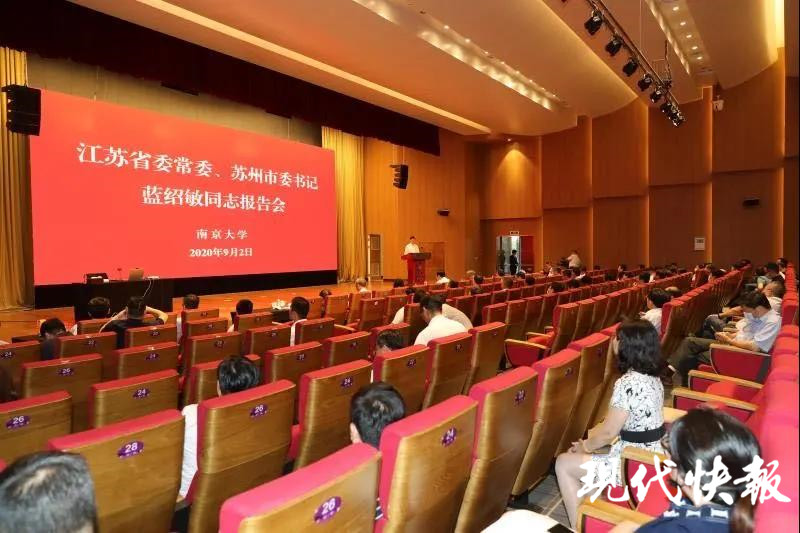 (通訊員 南宣 記者 舒越)9月2日,江蘇省委常委、蘇州市委書記藍紹敏報告會在南京大學舉行。校黨委書記胡金波會見藍紹敏一行并主持報告會。中科院院士、校長呂建等出席報告會并陪同參觀。本次報告會在南大仙林校區(qū)設主會場,鼓樓校區(qū)設分會場。
