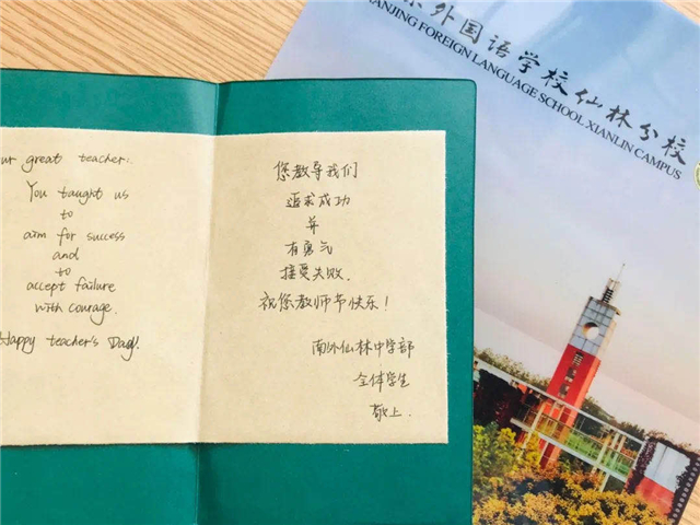 “無論是課堂上教授知識的各國外教,還是關(guān)心我們生活的班主任,或是待我們?nèi)绾⒆右话愕乃薰芾蠋?hellip;…感謝你們,讓我們體會到家一般的感覺。正因為你們無私的奉獻,才能讓我們成為自信的、能超越自己的人。”對于“感恩老師”,國際高中的同學(xué)們有著自己的理解。朱弈舟、王亦婧同學(xué)分別用中英文和大家分享自己的心得,“感恩老師并不需要我們?nèi)ネ瓿审@天動地的大事,它表現(xiàn)在日常生活中的點點滴滴:課堂上,一道堅決的目光、一個輕輕的點頭,證明了你在全身心投入、用心聽講,這便是感恩;下課后,在走廊里遇到老師,一抹淡淡的微笑、一個輕輕地招手、一聲甜甜的‘老師好’,這也是感恩;我們主動進取,尊重老師的勞動成果,這依舊是感恩;在畢業(yè)時,申請上自己滿意的大學(xué),無愧于自己和老師,這仍是感恩……”