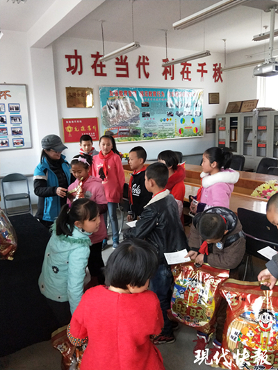 △曹輝給孩子們準(zhǔn)備了零食做禮物