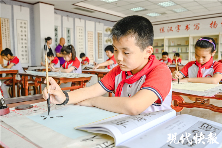 “她的堅(jiān)韌度和專注度比其他孩子要強(qiáng),這是練字的孩子最明顯的變化。”在一旁指導(dǎo)的老師卞曉漫和孫晨說(shuō),學(xué)校對(duì)書(shū)法非常重視,一二年級(jí)都有寫字課,三年級(jí)以上開(kāi)始開(kāi)設(shè)書(shū)法課。此外,中午在學(xué)校吃飯的孩子,每天午飯后還要再練字半小時(shí)。