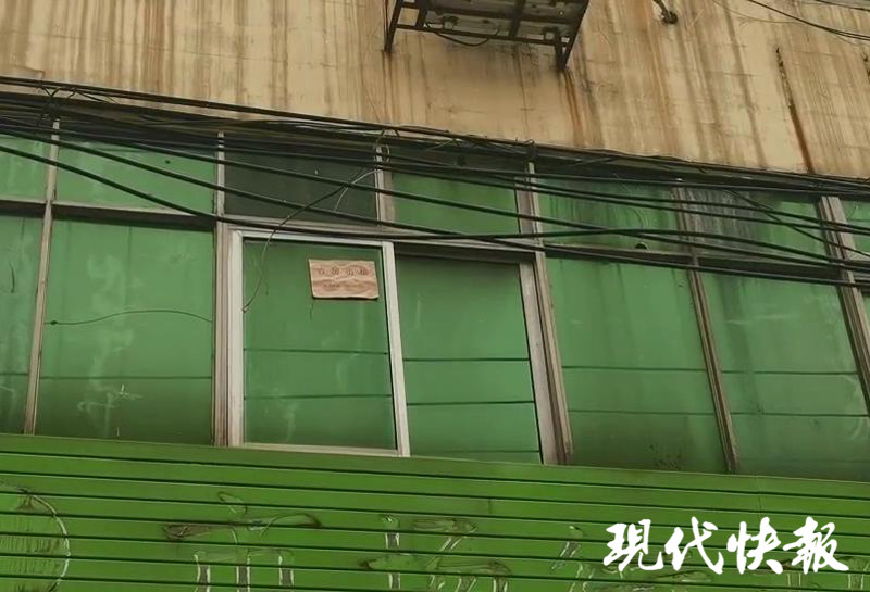 9月15日上午,記者來到連云港市海州區(qū)市場街,道路兩旁都是門面房,在朝西的一排門面房中間,就是曾經的“市場街雙語幼兒園”。這是一幢三層高的樓房,所有門窗緊閉,一樓有兩個卷簾門,卷簾門已經銹跡斑斑,二樓和三樓綠色的窗玻璃很突出,三樓的窗戶上還留著“中班”和“學前班”字樣,一樓綠色招牌上的字已被全部清除,但隱約還能看到“市場街雙語幼兒園(學前班)”的字跡,右下角還有一個電話。