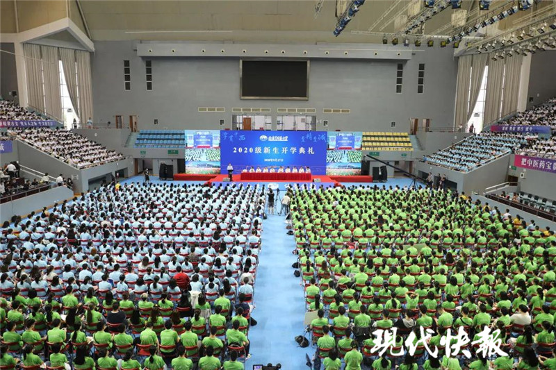 (通訊員 劉丹青 記者 仲茜)“鐘山腳下、揚(yáng)子江畔,杏林學(xué)子濟(jì)濟(jì)一堂。青春風(fēng)華、意氣軒昂,滿園桃李竟芬芳。”9月17日,南京中醫(yī)藥大學(xué)舉行2020級新生開學(xué)典禮。為了讓每名新生都能現(xiàn)場參會,學(xué)校在體育館設(shè)主會場,在豐盛樓報(bào)告廳、大學(xué)生活動中心青春劇場和教學(xué)樓設(shè)分會場,全體5058名2020級本科生、研究生、留學(xué)生,分別在主會場、分會場參加。典禮上,胡剛校長寄語新生:“愿你們善思以明勢,力行以建功,勤學(xué)以成才,乘風(fēng)破浪,揚(yáng)帆起航!”