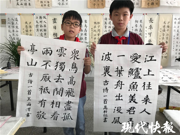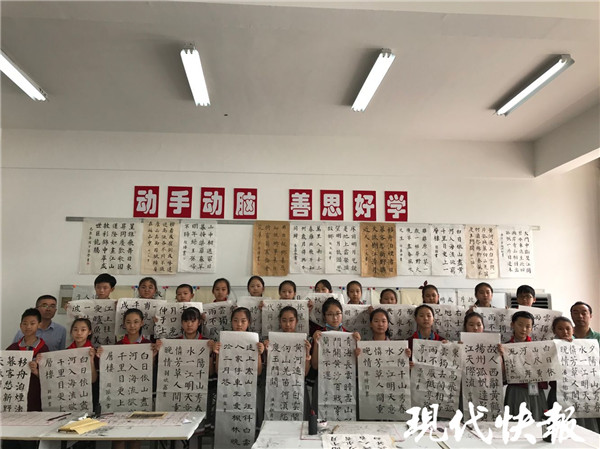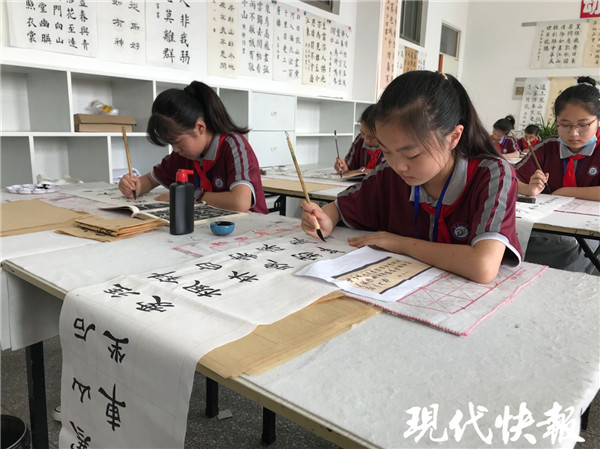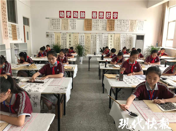 “書法教學(xué)是語文教學(xué)的重要組成部分。我校一直把書法社團作為特色社團來建設(shè),每年從三年級學(xué)生中挑選出部分精兵強將,充分利用中午寫字課和晚上課后服務(wù)的時間,由專人教學(xué)輔導(dǎo)。”響水縣銀河路小學(xué)教務(wù)處主任嵇建軍說。