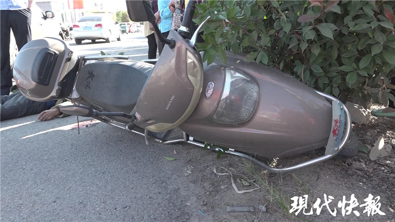 事發(fā)現(xiàn)場位于射陽縣長蕩鎮(zhèn)幼兒園北側(cè)的一個(gè)無燈控十字路口?,F(xiàn)代快報(bào)記者在現(xiàn)場看到,一名身穿黃大衣的老人仰面躺在路邊,已無生命體征,地面有一攤血跡。一輛電動(dòng)自行車倒在旁邊的綠化樹下,肇事私家車的前保險(xiǎn)杠開裂,車牌照彎曲變形。