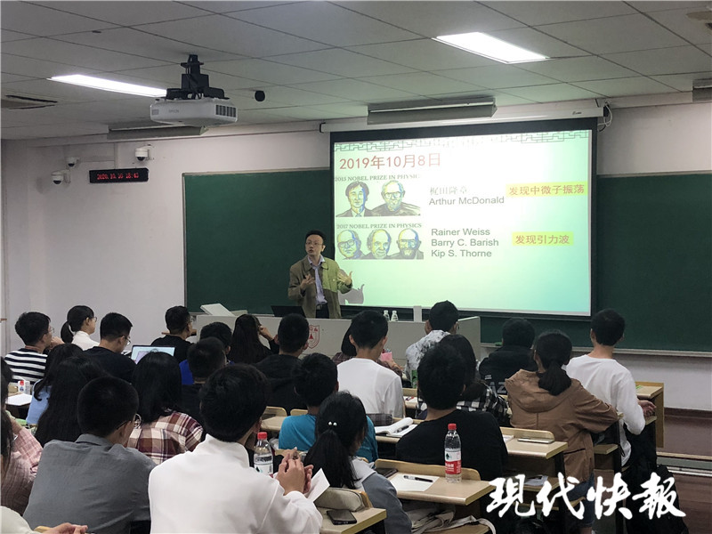 “今年諾貝爾物理學獎公布,又是研究天文物理的科學家獲獎,為什么諾獎對天文情有獨鐘?這反映了學科發(fā)展的一個趨勢,人們視野越來越開闊,胸懷宇宙,可能也同時回答了《小歡喜》中‘你為什么非要上那個南大’的疑問,因為南大天文是全國第一啊!”幽默的語言加上深入淺出的天文知識,一堂課笑聲、掌聲不斷,南京大學天文與空間科學學院教授陳鵬飛因此“圈粉”無數(shù)。