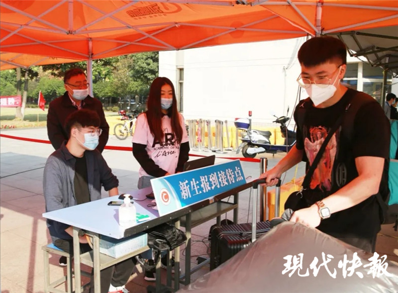 走進校門,歡迎新生的標(biāo)語隨處可見,向校園的新主人送上一聲問候,讓新生們感覺十分親切。志愿者們早早出發(fā),有的深夜值班,到火車站、機場等待將新生安全、順利地接送到報到現(xiàn)場。校園里,還有貼心的擺渡車和行李車,檢測體溫查驗“蘇康碼”,簡單辦理手續(xù)后,新生們就算完成入學(xué)了。