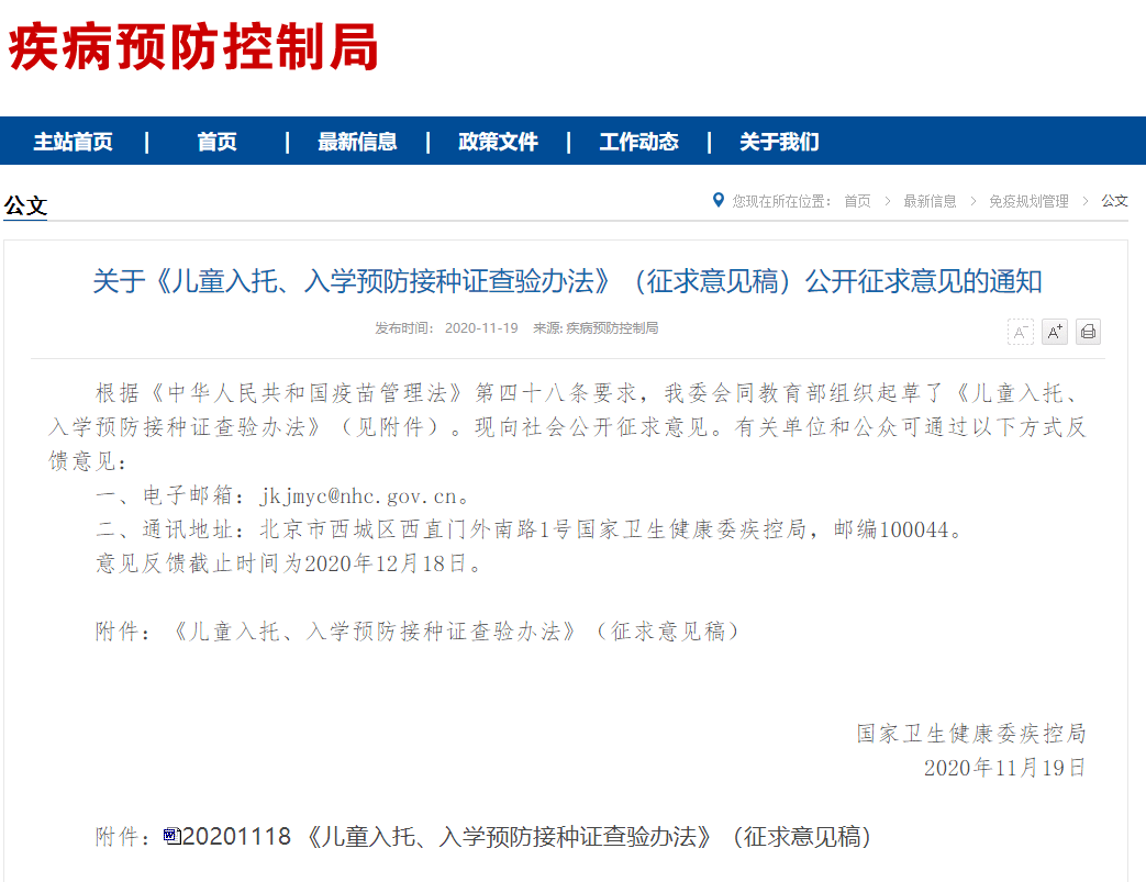 為加強(qiáng)托育機(jī)構(gòu)、幼兒園和學(xué)校傳染病防控,提高適齡兒童國家免疫規(guī)劃疫苗接種率,國家衛(wèi)健委疾控局最新發(fā)布了《兒童入托、入學(xué)預(yù)防接種證查驗辦法》(征求意見稿),其中明確規(guī)定,托育機(jī)構(gòu)、幼兒園和學(xué)校應(yīng)當(dāng)將預(yù)防接種證查驗工作納入兒童入托、入學(xué)報名程序,預(yù)防接種證查驗相關(guān)資料應(yīng)納入學(xué)生健康檔案。