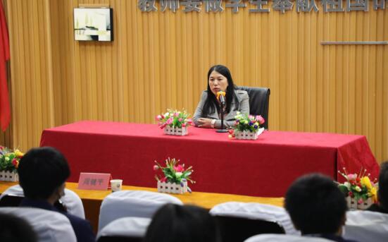 講座接近尾聲,市領(lǐng)導(dǎo)上臺(tái)做了總結(jié)性發(fā)言,她指出,通過(guò)此次“技能大師進(jìn)校園宣講”活動(dòng),為廣大師生提供了與工匠大師面對(duì)面交流的機(jī)會(huì),讓學(xué)生對(duì)敬業(yè)、奉獻(xiàn)的勞動(dòng)精神和精益求精的工匠精神有了全新的理解,對(duì)學(xué)校進(jìn)一步提高人才培養(yǎng)質(zhì)量具有重要意義。