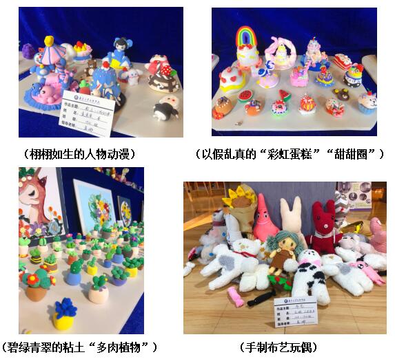 展臺(tái)上一個(gè)個(gè)獨(dú)具匠心的手工作品,融入了中華民族傳統(tǒng)的手工藝與現(xiàn)代手工制作。粘土,剪紙,衍紙畫,紙漿貼畫,布藝,編織,刺繡等手工作品,賺足了大家的眼球。學(xué)生代表還給前來參觀的師生分享自己做手工的經(jīng)驗(yàn)、想法以及制作過程等等,讓每一位喜愛手工的人都受益匪淺。
