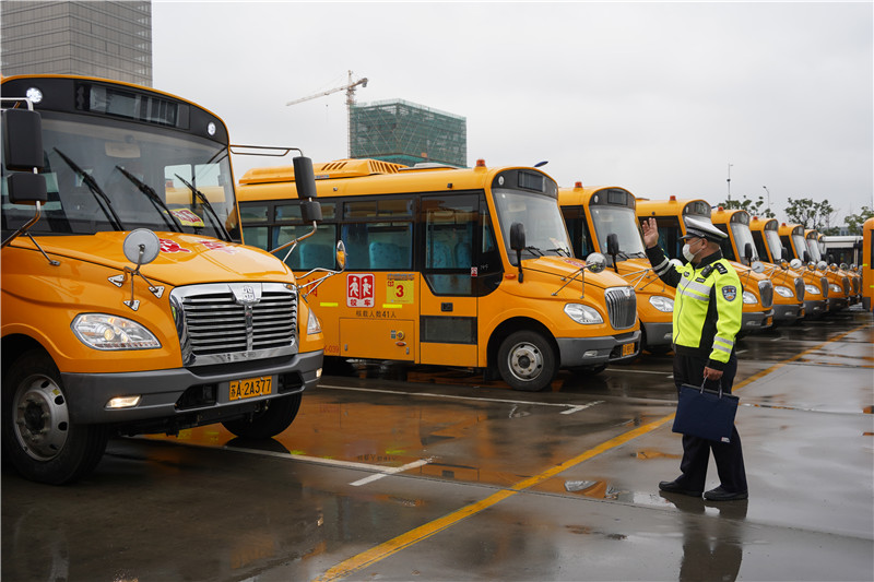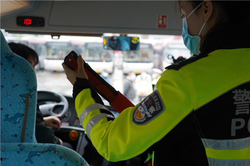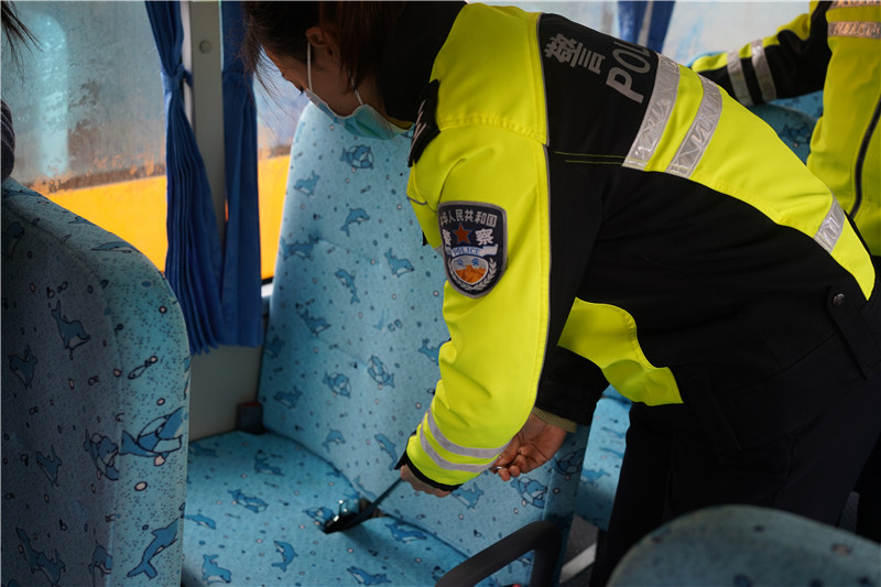 檢查中,民警針對(duì)以下方面進(jìn)行檢查:校車標(biāo)志、滅火器、安全帶、安全錘、緊急逃生門、車輛燈光、停車指示牌、校車的年檢、輪胎的安全性能及校車技術(shù)狀況、安全駕駛情況和校車安全管理措施落實(shí)情況等。民警認(rèn)真核對(duì)了校車駕駛?cè)说鸟{駛資質(zhì),并要求校車駕駛?cè)艘杂X遵守交通法規(guī),嚴(yán)格落實(shí)疫情防控工作,安全行駛、平安出行。
