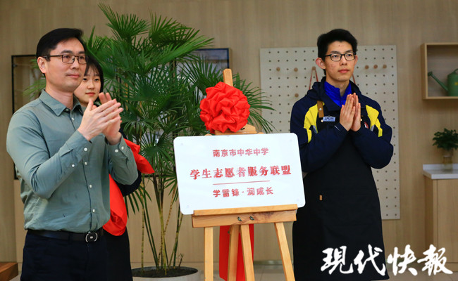 陽光休閑區(qū)、閱讀區(qū)、園藝區(qū)……走進(jìn)中華中學(xué)“新綠”植物書吧,一片綠意盎然,讓人心曠神怡。當(dāng)天,是植物書吧首次開放,在這里,“中華中學(xué)學(xué)生志愿者聯(lián)盟”也正式成立揭牌。