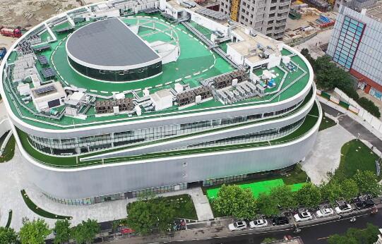 新宮位于馬臺街與童家巷西沿交叉西北角,遠遠望去,白色的玻璃幕墻、柔和的外墻線條,圓形的陽光房頂,整個建筑好似一條輕柔活潑的飄帶,既時尚又富有科技感。