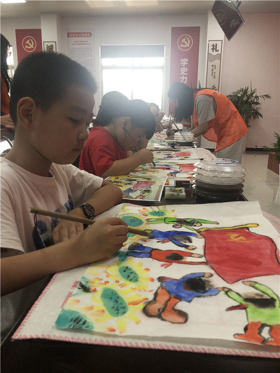 7月初,由南京曉莊學(xué)院美術(shù)學(xué)院學(xué)生黨支部31名黨員組成的“藝之海”暑期社會(huì)實(shí)踐團(tuán)深入南京江寧牌坊村、溧水桑園蒲村、湯山鶴嶺和寧西兩個(gè)社區(qū),面向當(dāng)?shù)亓羰貎和_展“弘揚(yáng)雨花英烈精神,輝煌百年紅色接力”紅色藝術(shù)小課堂活動(dòng),帶孩子們一起學(xué)習(xí)雨花英烈事跡,通過繪畫、書法、手工等不同的形式創(chuàng)作紅色藝術(shù)作品,豐富孩子們的藝術(shù)體驗(yàn),激發(fā)孩子們愛黨愛國(guó)情懷,累計(jì)服務(wù)12天。