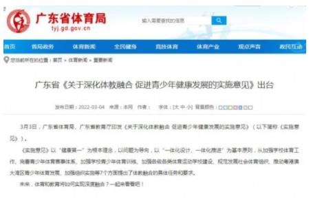 廣東省體育局副局長(zhǎng)林瑛表示,早在2020年年底,體育和教育部門就聯(lián)合啟動(dòng)了《意見(jiàn)》的編寫工作,經(jīng)過(guò)12次研討會(huì)、專家組深入調(diào)研論證和向社會(huì)廣泛征求意見(jiàn)后最終成文。
