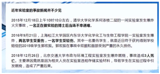 高校實(shí)驗(yàn)室事故基本小概率的事情,學(xué)理工科的同學(xué)做實(shí)驗(yàn)是必備的,這次出問題的實(shí)驗(yàn)室又是在“生化環(huán)材”四大天坑專業(yè)里面。雖然被稱為天坑專業(yè);也是做實(shí)驗(yàn)室最多的學(xué)科。生化環(huán)材是典型的工科專業(yè),只要是工科實(shí)驗(yàn)是必備的學(xué)習(xí)內(nèi)容。