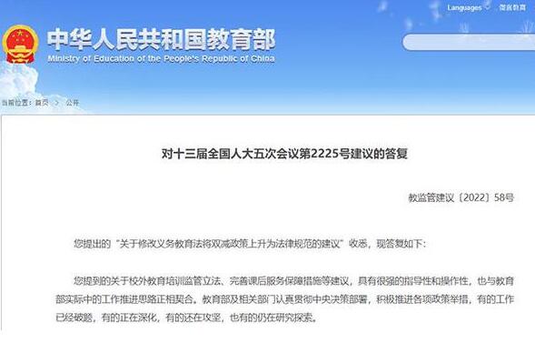 答復表示,教育部已啟動了校外培訓立法研究,重點研究理順校外培訓立法與現(xiàn)有法律、法規(guī)、政策的關系,對相關實踐進行總結,對一些難題(如怎樣確定校外培訓立法的定位,應該以什么層級、形式、程序開展立法等)進行深入研判,對一些關鍵點(如對校外培訓從業(yè)人員、材料課程、培訓收費的管理舉措中,有哪些措施亟須上升到立法層面予以解決等)進行實驗探索,目前已起草了校外培訓監(jiān)督管理條例初稿,正在加快推進。