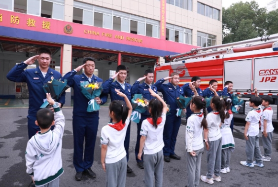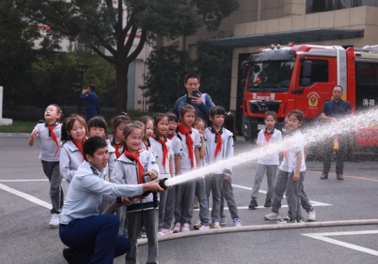 參觀內(nèi)務(wù)之后,孩子們對消防云梯車和消防水槍出水進(jìn)行了親身體驗,深切感受到了這些裝備在滅火救援中的重要作用。為了致敬消防員們的辛勤工作和奉獻(xiàn)精神,孩子們還特意為他們獻(xiàn)上了鮮花。作為活動的結(jié)尾,消防員們向孩子們頒發(fā)了特別證書,并共同合影留念,為這次難忘的活動畫上了圓滿的句號。