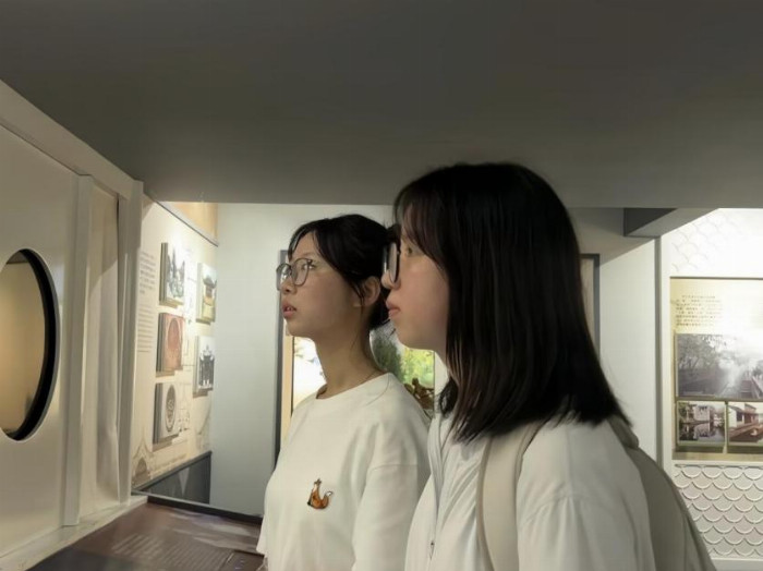緊鄰展示館的便是胥江,據(jù)傳為春秋吳國名臣伍子胥所開鑿。河面上,船楫往來,波光粼粼,帶著幾分古韻與今風交織的愜意。望著那些蓄勢待發(fā)的船只,團隊成員們仿佛穿越時空,置身于歷史洪流之中,與這條古老而又活力四射的河流進行了一場跨越世紀的對話。成員們不禁感慨到:參觀了展館后再看到這條河流,感覺像是在和一位故人對話,真正的感受到了那份流淌在血脈中的堅韌不拔與生生不息的運河精神。運河不息,堅定了成員探索文化奧秘的決心,未來風雨兼程,但心有所信,方能行遠。