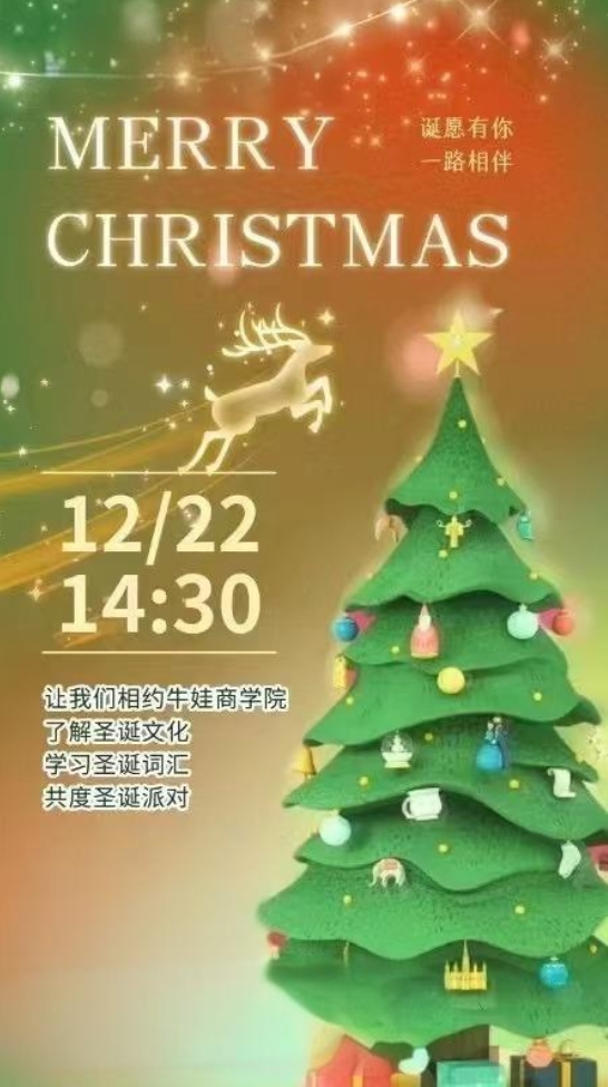 叮叮當(dāng),叮叮當(dāng),鈴兒響叮當(dāng)……當(dāng)圣誕的鐘聲敲響,牛娃商學(xué)院(位于金鷹北街區(qū)2樓)將變成一片歡樂的海洋。12月22日下午兩點(diǎn)半,我們特別邀請(qǐng)了新老學(xué)員及家長(zhǎng)們,共同參加這場(chǎng)圣誕狂歡派對(duì)。在這里,你將有機(jī)會(huì)深入了解圣誕節(jié)的悠久歷史與獨(dú)特習(xí)俗,學(xué)習(xí)那些充滿趣味的圣誕詞匯,讓你的英語(yǔ)詞匯量在歡樂中悄然增長(zhǎng)。