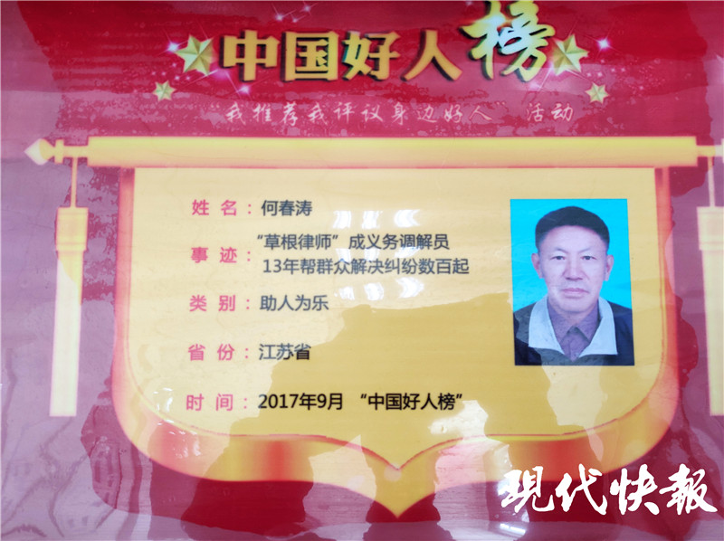 這個“何律師”叫何春濤,是一名老黨員,同時是揚(yáng)州市邗江區(qū)竹西街道安平社區(qū)的一名法律志愿者。雖然并不是律師,但何春濤精通法律知識,老百姓有事兒就找他。2011年,他成立了“何春濤工作室”,慕名前來咨詢的人更多了。