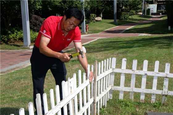 對(duì)園區(qū)內(nèi)景觀設(shè)施發(fā)現(xiàn)損壞之處及時(shí)動(dòng)手修補(bǔ)完善