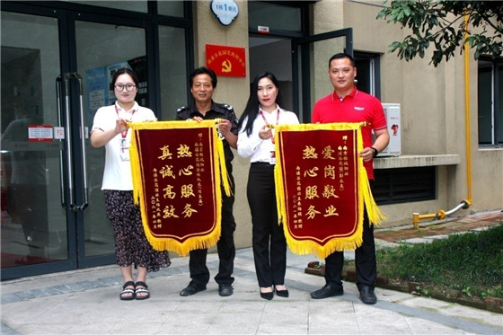 近日,家住12棟老倆口雙手捧著送來一面紅彤彤大錦旗到物業(yè)辦公室,物業(yè)服務(wù)中心工作人員說道,“謝謝您, 感謝您給我們送來的最高榮譽(yù)”,“是你們物業(yè)服務(wù)做的十分優(yōu)秀,讓我們看到一顆顆愛心”,鮮紅的大錦旗上金燦爛的金字格外耀眼“盡職盡責(zé) 值得信賴 ”等字體。原先老夫妻倆將邀請周良高吃飯或送給盒精品茶葉,這些他再三提出不能接受,他們只好送來錦旗。