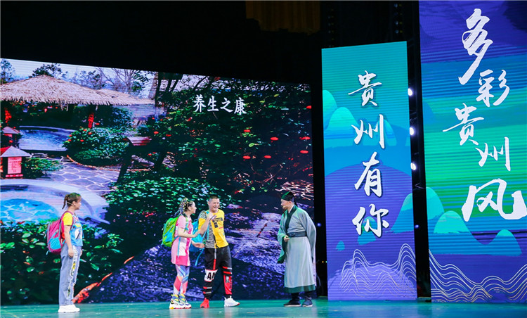 活動(dòng)現(xiàn)場,隨著悠揚(yáng)婉轉(zhuǎn)的音樂響起,一位樸素打扮的行者和一位背著包的游客陸續(xù)登上舞臺(tái),走過壯美山水的光影布景……在兩人的帶領(lǐng)下,多彩貴州的大幕向觀眾徐徐拉開。原來,他們一位是“徐霞客”,一位是現(xiàn)代“背包客”,兩人穿越時(shí)空,聯(lián)手在舞臺(tái)上帶領(lǐng)觀眾領(lǐng)略貴州各地獨(dú)特的民風(fēng)民俗和美麗的山水風(fēng)光,展現(xiàn)了貴州3州6市“新、奇、特、美”的自然景色和獨(dú)特的人文風(fēng)貌。