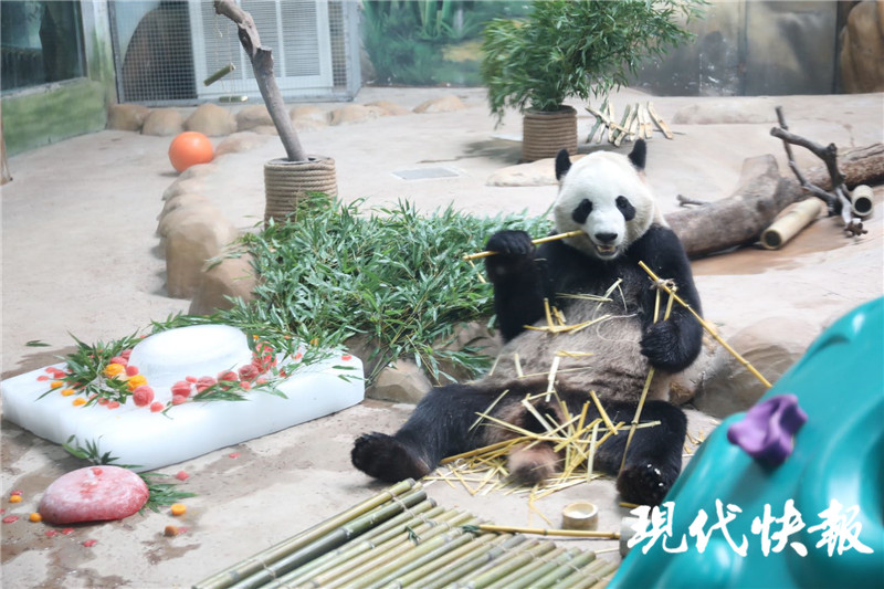 龍鳳胎大熊貓迎來生日會 工作人員精心準(zhǔn)備冰蛋糕