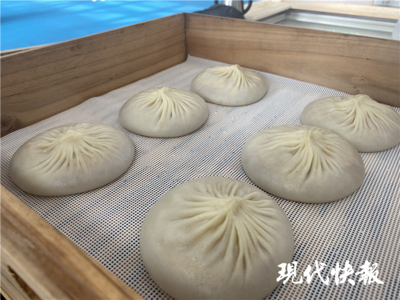 在一家蟹黃湯包參展商的展位前,不少觀眾排隊在等剛出籠的湯包,大廚現(xiàn)場揉面、搟皮、包湯包,動作嫻熟行云流水一般。“每只湯包大概有28-32個褶子,餡料130克左右。”該品牌銷售負責人賈先生說,他們與螃蟹基地有常年合作,湯包所用螃蟹都是現(xiàn)拆的蟹黃和肉,保證食材新鮮美味。