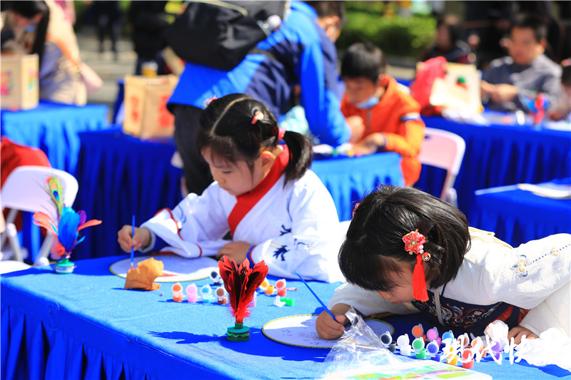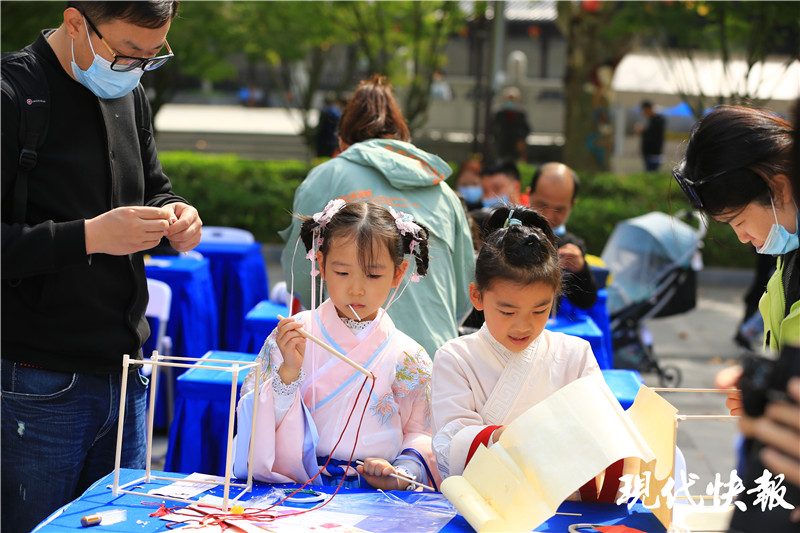 現(xiàn)代快報記者看到,上午10點(diǎn),現(xiàn)場便吸引了眾多對中國傳統(tǒng)文化感興趣的市民及游客,不少小朋友對國風(fēng)展現(xiàn)出濃厚的興趣,并積極參與到活動中來。在國學(xué)課堂環(huán)節(jié),主持人現(xiàn)場提問關(guān)于國風(fēng)的課外知識。小朋友們踴躍舉手作答,不僅能準(zhǔn)確說出答案,還能講出其中典故。在傳統(tǒng)國韻游戲環(huán)節(jié),小朋友們總能玩出新花樣,創(chuàng)意十足!