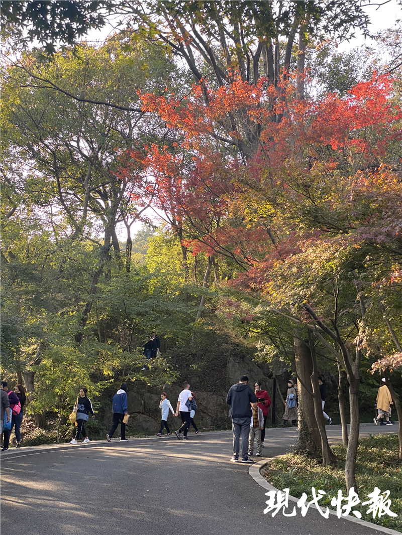 此外,當(dāng)天也是重陽佳節(jié),記者在景區(qū)看到,不少老年人趁著早上陽光正好,前來景區(qū)登高,他們一口氣登到山頂,在棲霞山的最高點(diǎn)遠(yuǎn)眺長江。也有一些老人家表示,“除了來登高,還聽說現(xiàn)在棲霞山有一些楓葉開始變色了,趕緊來看看。”
