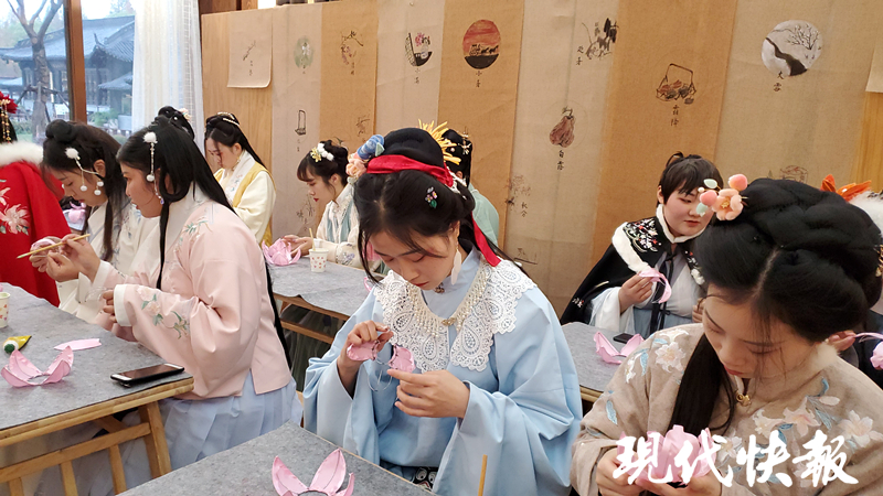 當(dāng)天,還有眾多漢服愛(ài)好者走進(jìn)瘦西湖,展示中華傳統(tǒng)服飾之美。漢服愛(ài)好者們走進(jìn)匠心藝術(shù)館,體驗(yàn)宮燈制作;走進(jìn)美食街坊內(nèi)的非遺體驗(yàn)館,在雕版老師的指導(dǎo)下,親手印制出雕版印刷作品;一同制作薺菜湯圓,體驗(yàn)傳統(tǒng)文化的魅力。