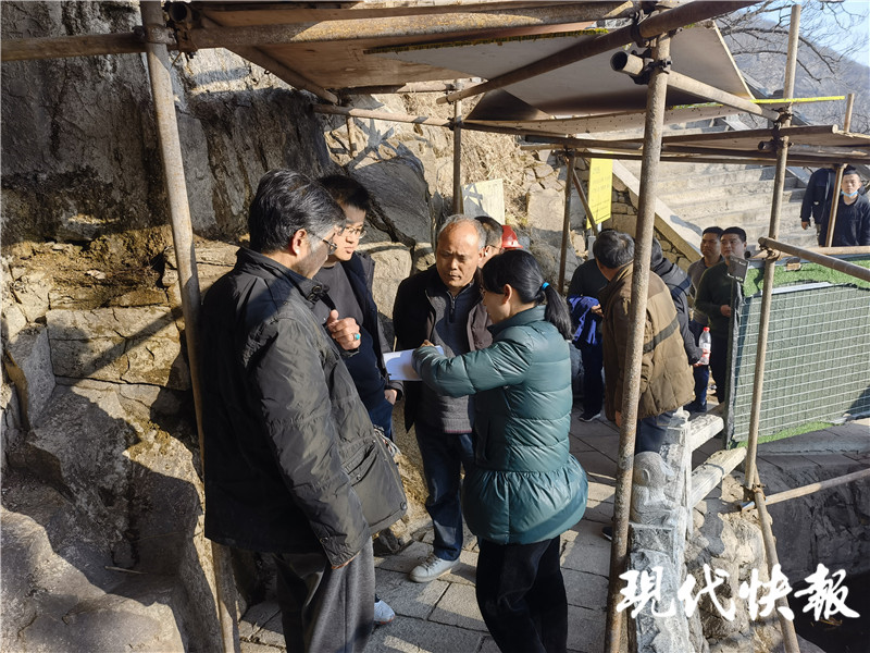 據(jù)悉,為了讓保護工程的施工方案更貼合現(xiàn)場實際,連云港市文保單位專門邀請南京博物院的文保專家,考察了工程現(xiàn)場,并就有關工程技術問題進行溝通,對水簾洞水簾的流向路徑以及挑檐的制作等技術問題進行了深入的探討,在總體設計框架下結合現(xiàn)場實際,對施工方案進行了更細致的完善和優(yōu)化。同時,還對施工安全、工程進度以及石刻所在位置的環(huán)境整治問題均提出了明確的要求。