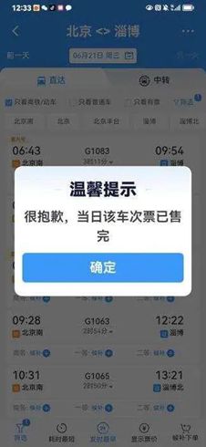 7日開始,民眾可購買6月21日(端午假期前一天)的火車票,7日中午,中新財經(jīng)查詢12306APP發(fā)現(xiàn),北京至淄博的高鐵動車票開售不久便被搶購一空。若乘客想前往淄博,只能選擇候補購票或者“買長乘短”。
