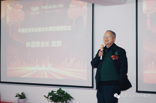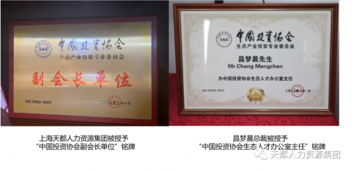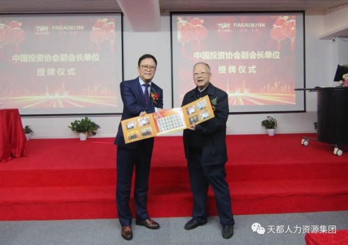 林嘉騋會(huì)長(zhǎng)為上海天都人力資源集團(tuán)授予“中國(guó)投資協(xié)會(huì)副會(huì)長(zhǎng)單位”銘牌