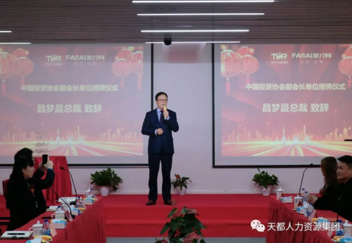 授牌儀式首先由昌夢(mèng)晨總裁進(jìn)行致辭。首先他非常感恩中國(guó)投資協(xié)會(huì)和林嘉騋會(huì)長(zhǎng)對(duì)于天都和發(fā)才網(wǎng)的信任,他指出,中國(guó)投資協(xié)會(huì)副會(huì)長(zhǎng)單位及生態(tài)人才辦公室主任不僅是一份榮譽(yù),更是一份沉甸甸的責(zé)任。天都人力資源集團(tuán)作為一家成立于2005年已擁有18年發(fā)展歷程的人資服務(wù)型集團(tuán)企業(yè),見(jiàn)證了人力資源行業(yè)從人力資源轉(zhuǎn)向人力資本再到人才資本的更新迭代,為全面踐行國(guó)家人才戰(zhàn)略,加快建設(shè)世界重要人才中心和創(chuàng)新高地,天都持續(xù)轉(zhuǎn)型升級(jí),今年天都以互聯(lián)網(wǎng)+六大事業(yè)部作為核心,多維度推動(dòng)人才資本全方位發(fā)展。作為中國(guó)投資協(xié)會(huì)生態(tài)人才辦公室主任,將推動(dòng)“綠水青山萬(wàn)里行”生態(tài)人才建設(shè),為鄉(xiāng)村振興的人才發(fā)展,挖掘“鄉(xiāng)賢”、吸引“能人”、整合上海120個(gè)人才基地,發(fā)起各行業(yè)院士及博士工作站及行業(yè)論壇,向大健康、互聯(lián)網(wǎng)、數(shù)字化三大產(chǎn)業(yè)人才導(dǎo)向賦能,加速當(dāng)?shù)刂贫葎?chuàng)新、結(jié)構(gòu)創(chuàng)新、產(chǎn)業(yè)創(chuàng)新和功能創(chuàng)新,最終形成持續(xù)穩(wěn)定的生態(tài)人才發(fā)展鏈,搭建上海與長(zhǎng)三角地區(qū)乃至全國(guó)的資源、渠道和模式聯(lián)動(dòng),通過(guò)大數(shù)據(jù)、人工智能打造人才產(chǎn)業(yè)新業(yè)態(tài)、新模式,構(gòu)建人才產(chǎn)業(yè)發(fā)展的大格局,推進(jìn)長(zhǎng)三角及全國(guó)人才產(chǎn)業(yè)數(shù)字化、智能化、一體化高質(zhì)量發(fā)展。