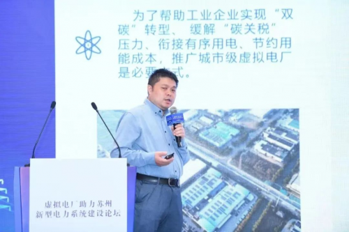 本次論壇以“虛擬電廠(chǎng)助力蘇州城市高質(zhì)量發(fā)展”為主題,邀請(qǐng)政府領(lǐng)導(dǎo)、行業(yè)領(lǐng)袖、高校教授、科研院所及蘇州地區(qū)標(biāo)桿企業(yè)代表等專(zhuān)家、學(xué)者。論壇上與會(huì)專(zhuān)家分享了虛擬電廠(chǎng)發(fā)展趨勢(shì)、解決方案和落地實(shí)踐。固德威智慧能源事業(yè)部副總經(jīng)理戴晨松博士受邀分享了《固德威城市級(jí)虛擬電廠(chǎng)研究與實(shí)踐》主題演講。