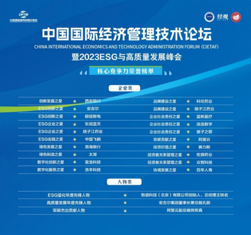 近日,中國國際經(jīng)濟管理技術(shù)論壇暨2023ESG與高質(zhì)量發(fā)展峰會在京閉幕。作為2023服貿(mào)會期間的一次重要會議,本次峰會邀請到國家有關(guān)部門專家學(xué)者、兩院院士、世界著名企業(yè)代表等嘉賓,圍繞“ESG與高質(zhì)量發(fā)展”主題進行熱烈討論。會上還發(fā)布了ESG“核心競爭力榮譽榜單”,揚子江藥業(yè)集團獲得“ESG品牌建設(shè)之星”、“ESG企業(yè)之星”兩項榮譽,成為會議唯一的雙獎獲得者。
