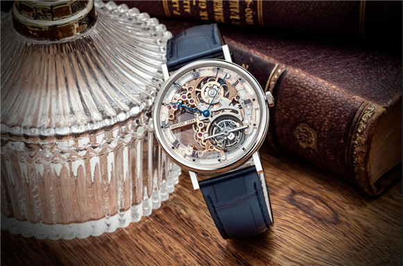 該枚精致作品的表殼外緣飾有錢幣飾紋,搭配弧面玻璃表鏡,令機(jī)芯構(gòu)造之美一覽無(wú)余。腕表沿用彰顯寶璣風(fēng)格之精髓的經(jīng)典藍(lán)鋼寶璣指針和焊接式表耳,演繹精妙簡(jiǎn)潔的設(shè)計(jì)理念。Classique經(jīng)典系列5395超薄陀飛輪鏤空腕表的防水深度達(dá)30米,備有玫瑰金表殼搭配灰色機(jī)芯款式,以及鉑金表殼搭配玫瑰金機(jī)芯款式供選擇。