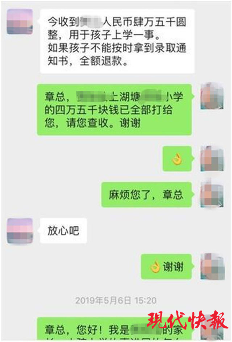 章某是常州本地人,民警梳理警方平臺數(shù)據(jù)發(fā)現(xiàn),在2018年曾出現(xiàn)多起涉及章某“不退費”的警情,最終都以章某退費了結(jié)。而此次報案的十幾個家庭卻沒有那么順利,在9月份開學(xué)后,他們的孩子有的上了一兩天就因“報名資料作假”被退學(xué),有的直接被學(xué)校告知“沒報上名”而無學(xué)可上。由于當(dāng)初章某承諾辦不成就會退全款,這些家長們與其交涉退費事宜時,章某先是找各種借口拖延,最后索性就不接電話,或者微信拉黑。