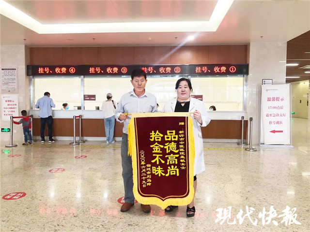 6月29日,失主劉先生專程將錦旗送到了新沂市中醫(yī)院,希望能有機會可以當(dāng)面向孟敏道謝。當(dāng)天孟敏休息不能趕來,同事代為收下了這面錦旗。