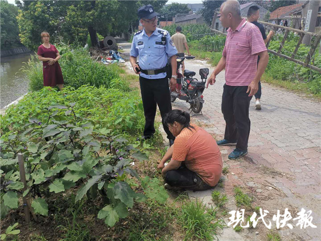 在岸上的陳老伯則就地取材找來竹竿,并及時(shí)傳遞給在水中的徐老伯。在兩人十多分鐘的配合下,最終落水女子被拖上了岸。兩人立即又對(duì)落水女子進(jìn)行了拍背急救,直到女子吐出兩大口塘水后,兩人才松了一口氣。此時(shí)接到報(bào)警的派出所民警也趕到了現(xiàn)場。