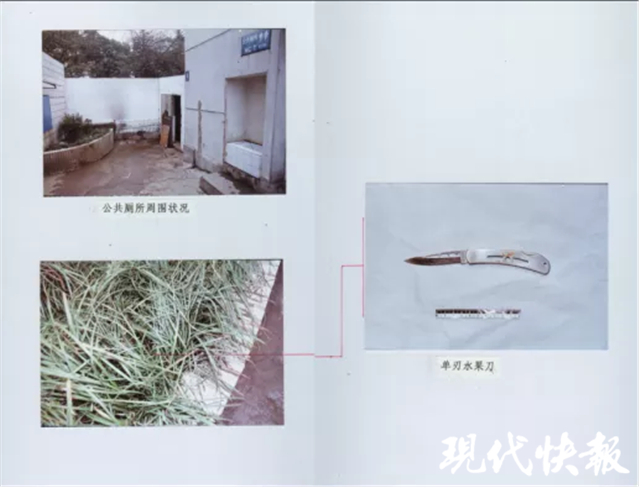 △ 17年前的案發(fā)現(xiàn)場。兇手行兇用的水果刀。行兇后,兇手將刀扔在草叢中