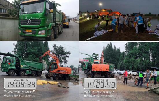 7月3日下午15:30左右,江寧銅坳急需大量車輛運送石料打通進(jìn)入礦區(qū)的抗洪搶險道路,然而處于停工管控期,部分駕駛員己放假回家。一方有難八方支援,危急時刻南京業(yè)達(dá)市政工程有限公司在第一時間采取行動,通知所有在寧己放假的駕駛員迅速回到工作崗位并到上級單位報備,同時通知后勤人員立即補充油料檢查車輛,以最快的速度準(zhǔn)備就緒。7月3日晚出車20臺,頭車輛于16點20左右趕到江寧區(qū)云礦路臨時料場,7月4日又出車15臺,7月5日出動8臺車在搶險現(xiàn)場工作。