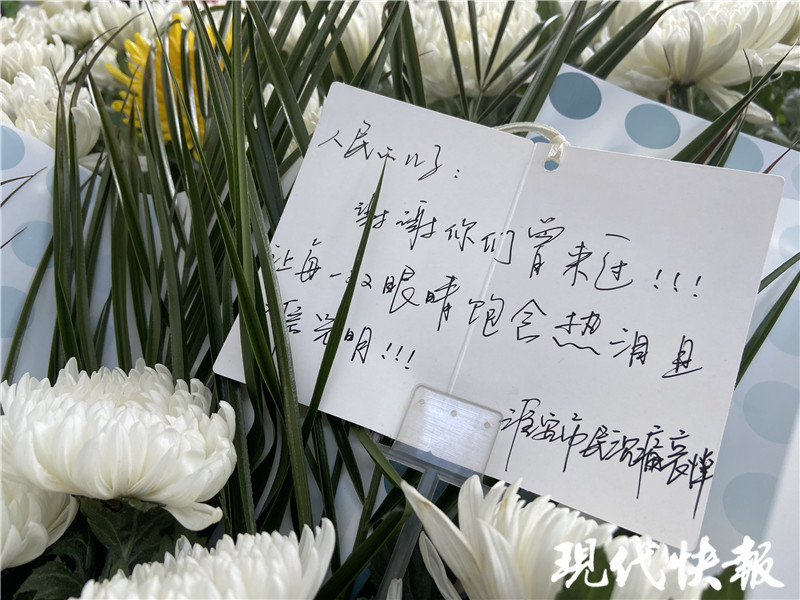 “公安民警一直在保護著我們,越是了解他們的付出和犧牲,越能體會到社會平安和幸福生活的來之不易。”淮安市民姚蘇航特地趕來參加告別儀式。有市民為表達敬意,專門送來一個花籃,還特地給他們心目中的兩位英雄寫了一句話“人民的兒子:謝謝你們曾經(jīng)來過,讓每一雙眼睛飽含熱淚,且堅信光明”。